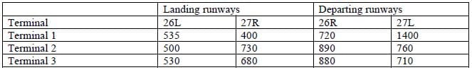 The average runway occupancy time, for both landings and take offs, was assumed as 60 seconds. The taxiway occupancy time was assumed as an average derived from historical data. Taxiway occupancy time depend on the specific couple runway-terminal, these values are shown in Table 2.