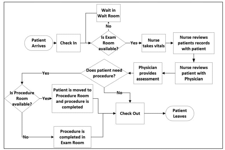 A main goal of healthcare organizations is to provide effective and efficient care. With this goal in mind, healthcare organizations have identified the necessity in analyzing and studying their systems and processes to improve operational performance. The design of healthcare facilities is one area that can impact the quality and effectiveness of care that patients receive. The number of treatment rooms, available equipment, and available physicians are a few of the many design choices that healthcare planners must determine when designing a system. Additionally, there have been several key healthcare trends that have increased the need for more carefully planned facilities; the focus on reduction of cost while increasing quality, the growing importance of improving patient satisfaction, and the shift in facility use to more outpatient care (Ulrich 2001). Poorly designed healthcare facilities cultivate environments that can cause long patient waits and congestions which can result in increased stress for healthcare staff (Rohleder et al. 2011), and ailments that were commonly treated via inpatient settings are transitioning to outpatient settings due to significant reduction in costs, increased patient quality of life, and decreased chance for hospital acquired infections (Vaughn et al. 2016). Addressing issues that arise from poorly designed facilities can have a great impact on the operational performance (Ulrich et al. 2008). For these reasons, healthcare centers are now being designed to consider the new demands for outpatient treatments.