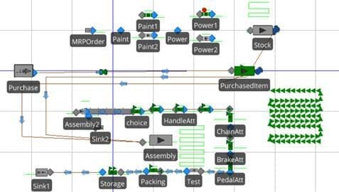 Demand-driven material requirements planning (DDMRP) is considered as an effective method to help enterprises plan and manage inventories and materials, and it addresses the challenges of the increasing variability and complexity in the current market environment. Herein, a simulation model of a bicycle assembly company was constructed to verify and evaluate the DDMRP benefits, for implementing experiments that consider variability.