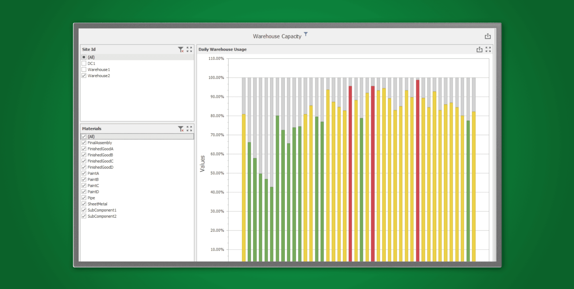 - Paneles de rendimiento: Los cuadros de mando personalizados y configurables específicos de DDMRP proporcionan información experta sobre el rendimiento operativo simulado