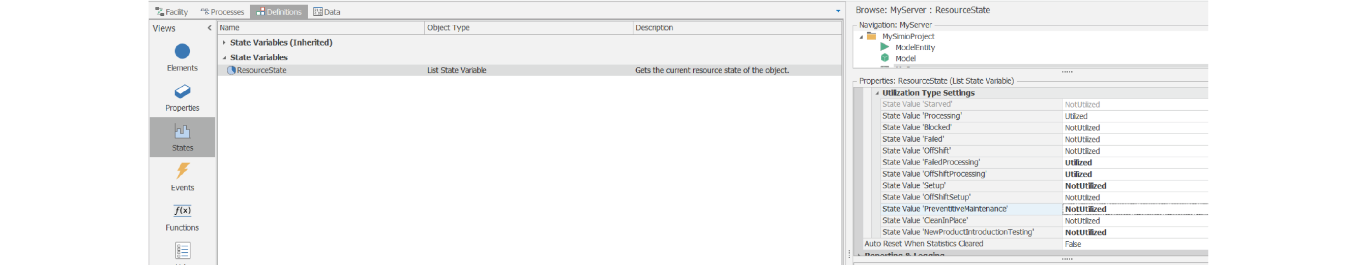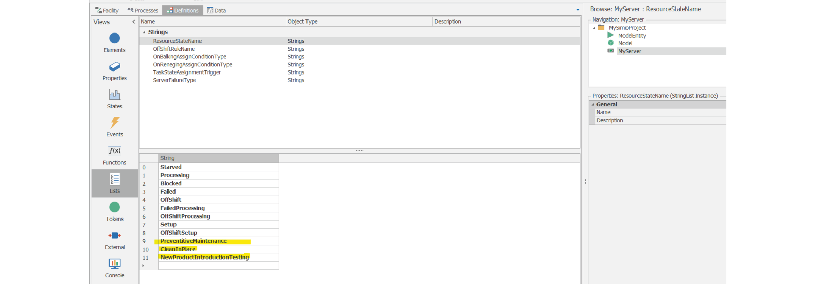 À l'intérieur de l'objet, naviguez jusqu'à l'onglet "Listes" sous "Définitions". Sous la liste spécifique "ResourceStateName", des chaînes ResourceState supplémentaires peuvent être ajoutées à la liste pour définir plus précisément les états dans lesquels l'objet peut se trouver.