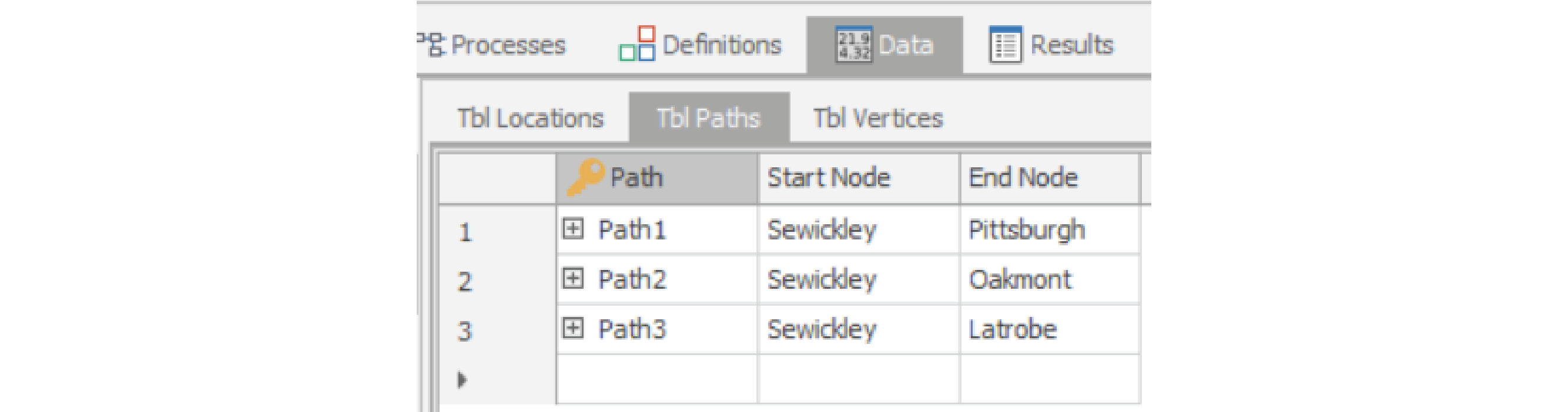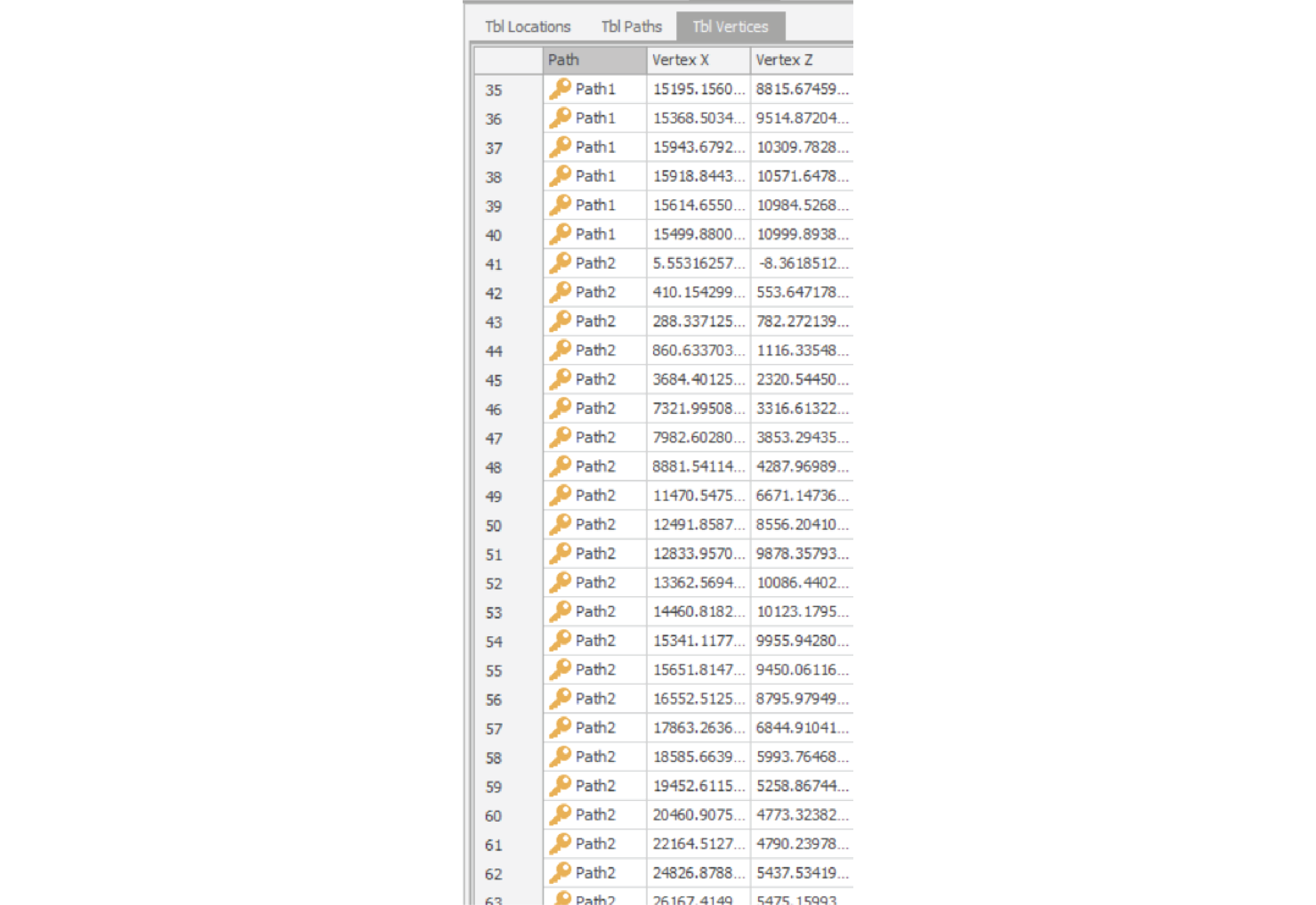 The ‘TblVertices’ table will appear blank prior to loading in this data, but once enabled, the table will populate with the vertex data and the pathways will update accordingly.